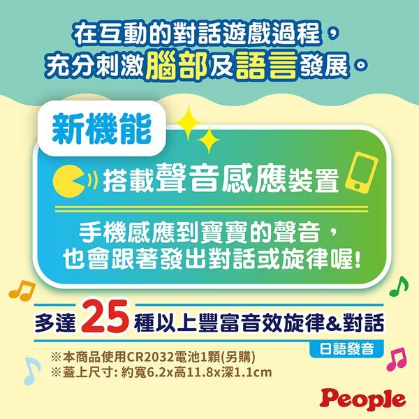 超逼真的手機設計,有寶寶最喜歡的25種以上豐富日語對話及音樂旋律,